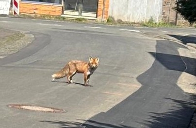 Abends ca. 19:30 – bin die Mesebach hochgefahren, da lief er auf der linken Straßenseite ruhig Richtung Autobahnunterführung und ist dann in einen Waldweg abgebogen. Peter Oppeland hat mir berichtet, dass er und sein Hund den Wolf schon öfters am Waldrand jenseits der A49 gesichtet hätten (Lothar Jansky)